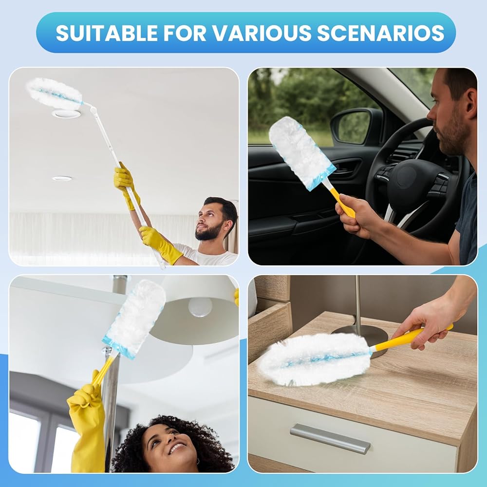 🧺【Suitable for Various Scenarios】: Heavy duty duster refills are suitable for furniture, curtains, ceiling fans, small ornaments, offices, electronic products, car interiors and other scenarios. The fluffy and soft microfiber will not scratch the surface of objects.