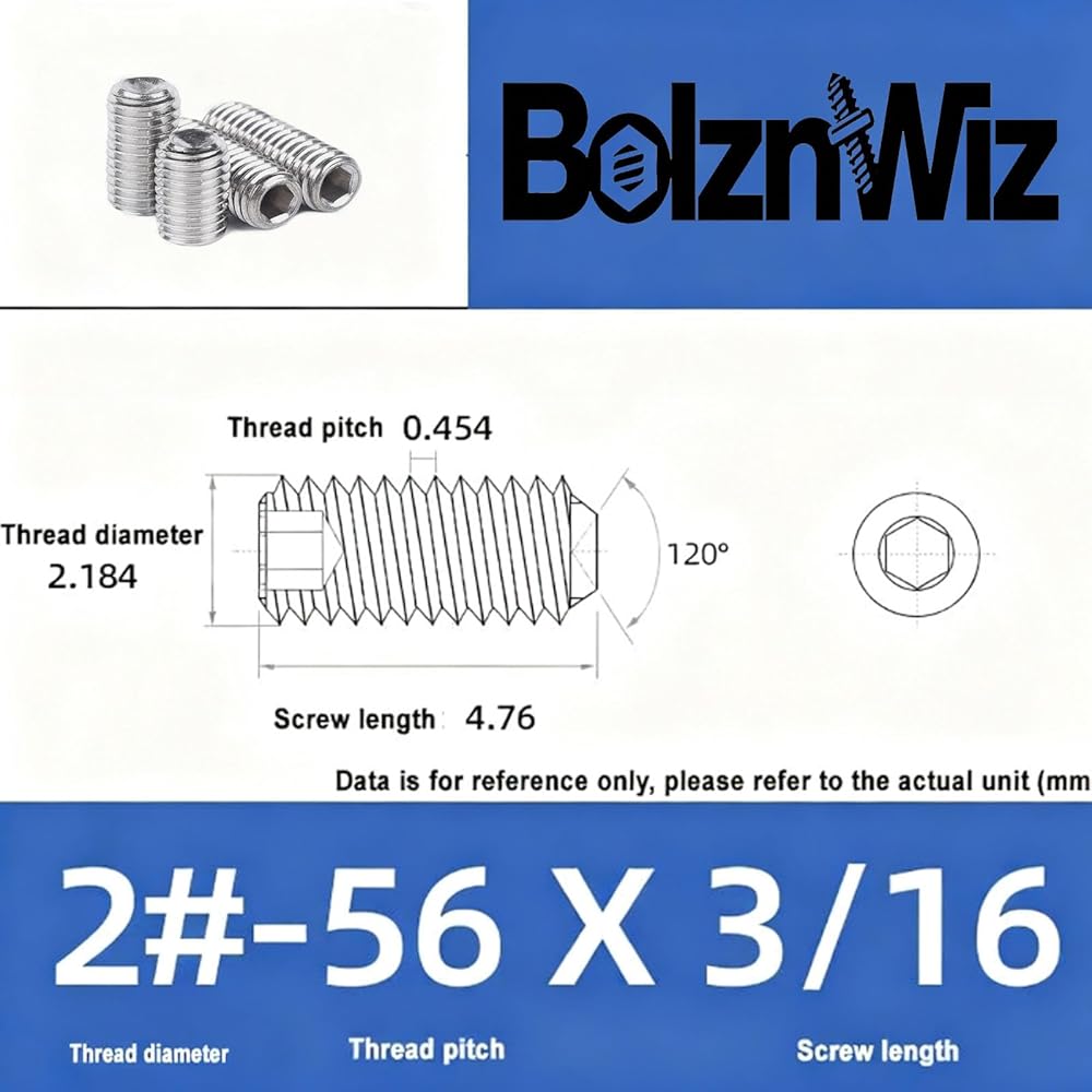 Solinxe 10PCS #2-56x1/8" Set Screws, 304 Stainless Steel Screws, Allen Head Socket Grub Screws for Industrial & Home Use
