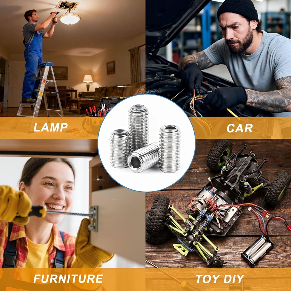Reliable Locking: Screws stainless steel prevent slipping in rotating parts, great for motor shafts in power tools or rollers in conveyor systems