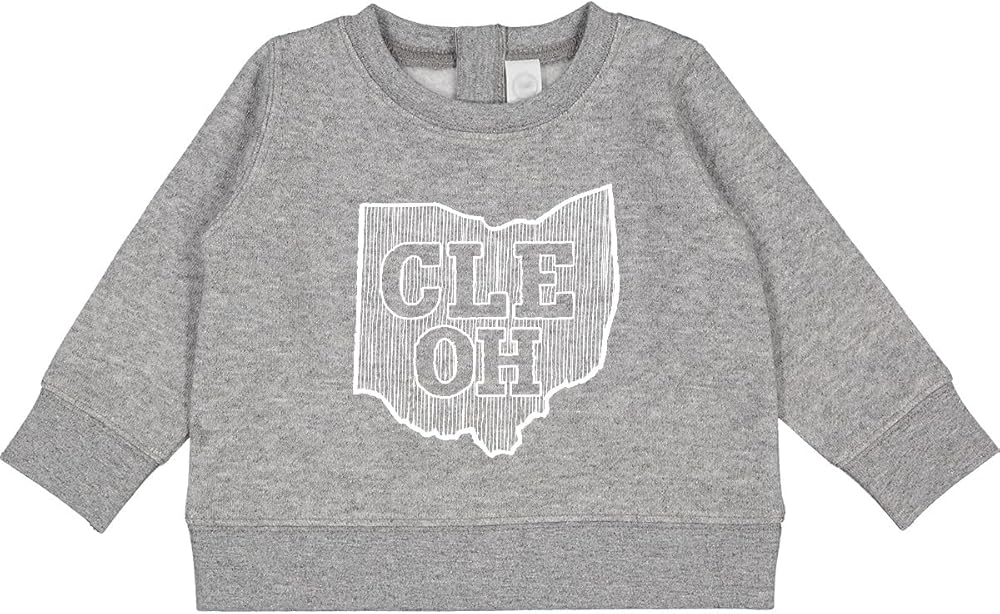 - Represent your roots with our Cleveland, Ohio, Baby Sweatshirt featuring the abbreviation "CLE OH" framed in a rustic Ohio frame.