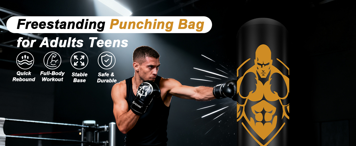 70" Punching Bag for Teens & Adults: Full-height freestanding bag made with thickened PVC for fast rebound and a realistic training experience. Perfect for boxing, karate, and daily fitness at home