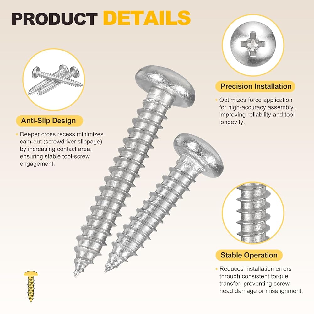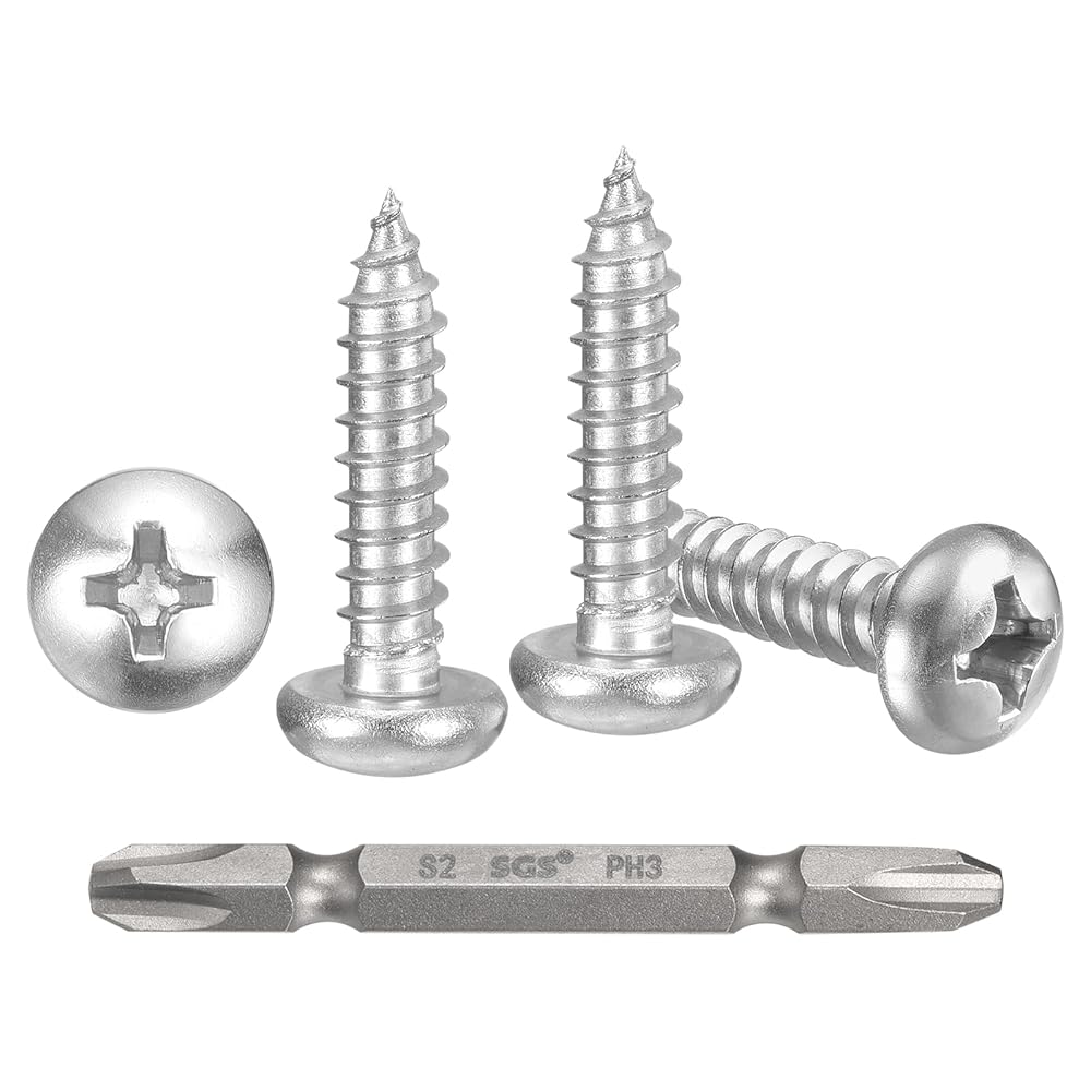 مسامير METALLIXITY Phillips Pan Head ذاتية التنصت (#12x7/8) 50 قطعة، برغي حفر ذاتي من الفولاذ المقاوم للصدأ 304 للخشب المعدني والبلاستيك مع لقمة، لأثاث لوحة مصراع الحائط في الخزانة، فضي