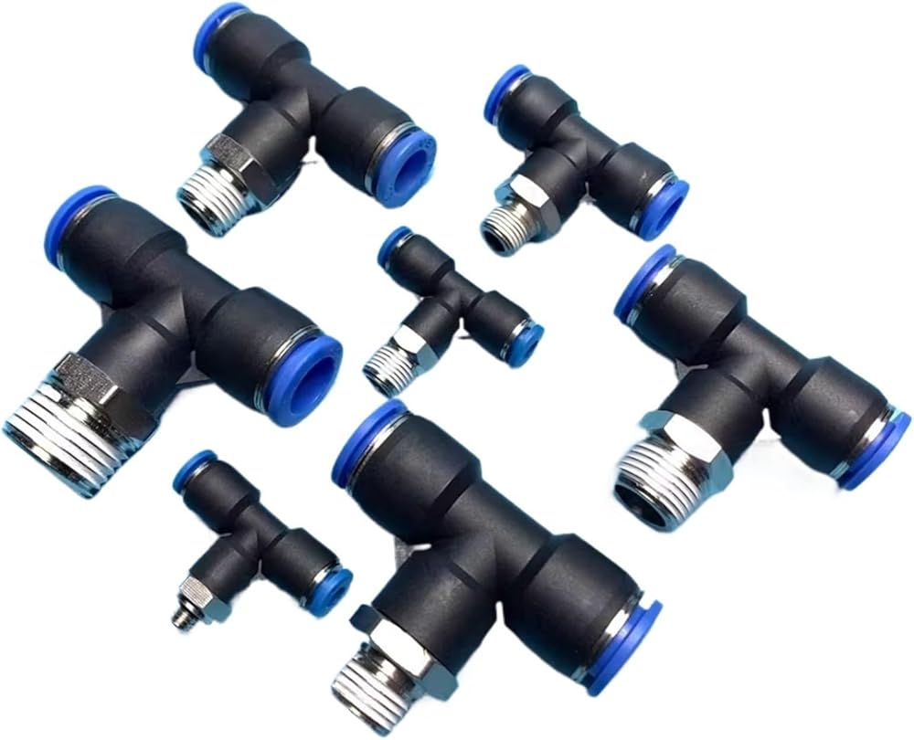 تي شيرت 3 طرق 1/8 بوصة 1/4 بوصة 3/8 بوصة 1/2 بوصة ذكر 10 مم أنبوب نحاسي هوائي دفع في توصيل الهواء المناسب إطلاق سريع (BSPP، 10MM_3/8 بوصة)