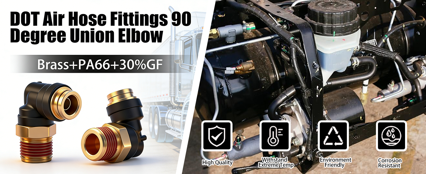السلامة والامتثال المعتمدان: تم تصنيعه بما يتوافق بدقة مع معايير D.O.T. معايير FMVSS 571.106 وSAE J2494-3. متوافق تمامًا مع أنابيب النايلون SAE J844 من النوع A أو النوع B. تم تصميمها خصيصًا للأنظمة الهوائية عالية الضغط في المركبات التجارية، مما يضمن سلامة نقطة الاتصال والحد الأدنى من التسرب لتعزيز السلامة على الطريق
