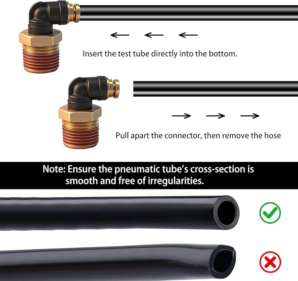 تصميم الدفع للتوصيل لسهولة التركيب: يتميز بتصميم مبتكر بضغطة واحدة للتجميع والتفكيك بسهولة. ما عليك سوى إدخال الأنبوب حتى يستقر في مكانه. للإفراج، اضغط على الكوليت واسحب الأنبوب للخارج. لا توجد حاجة لأي أدوات، مما يؤدي إلى تحسين الكفاءة بشكل كبير أثناء تركيب وصيانة خطوط الهواء