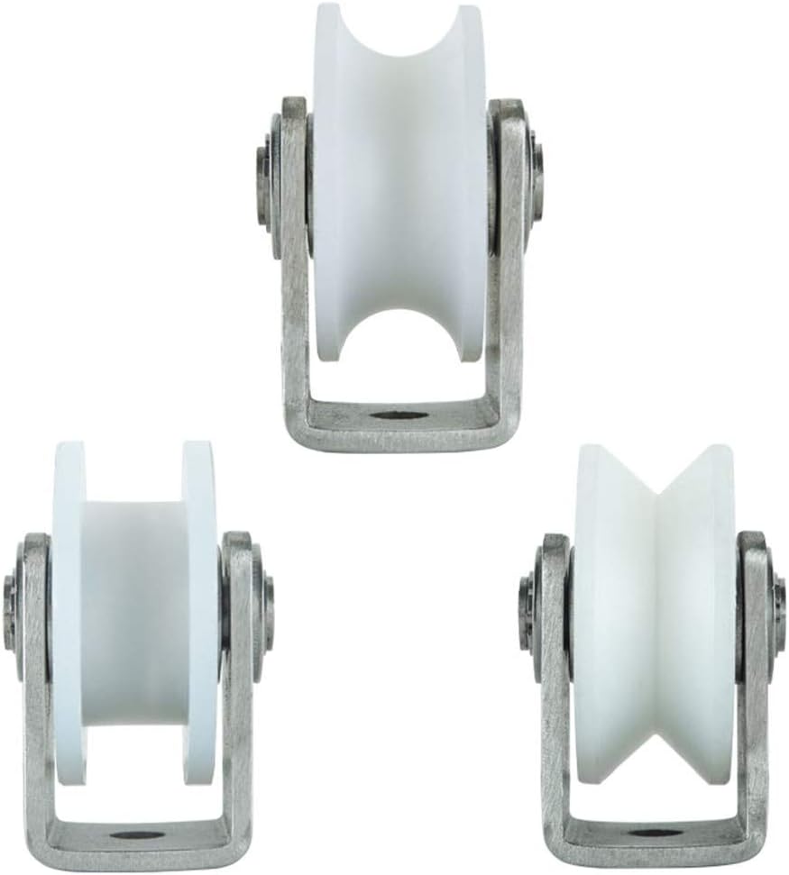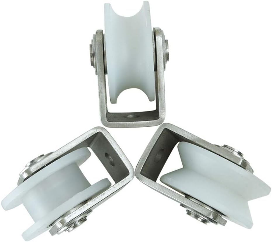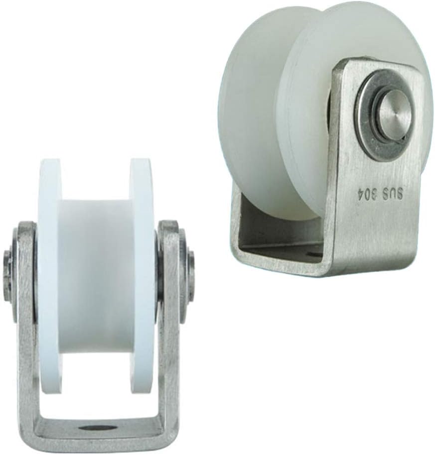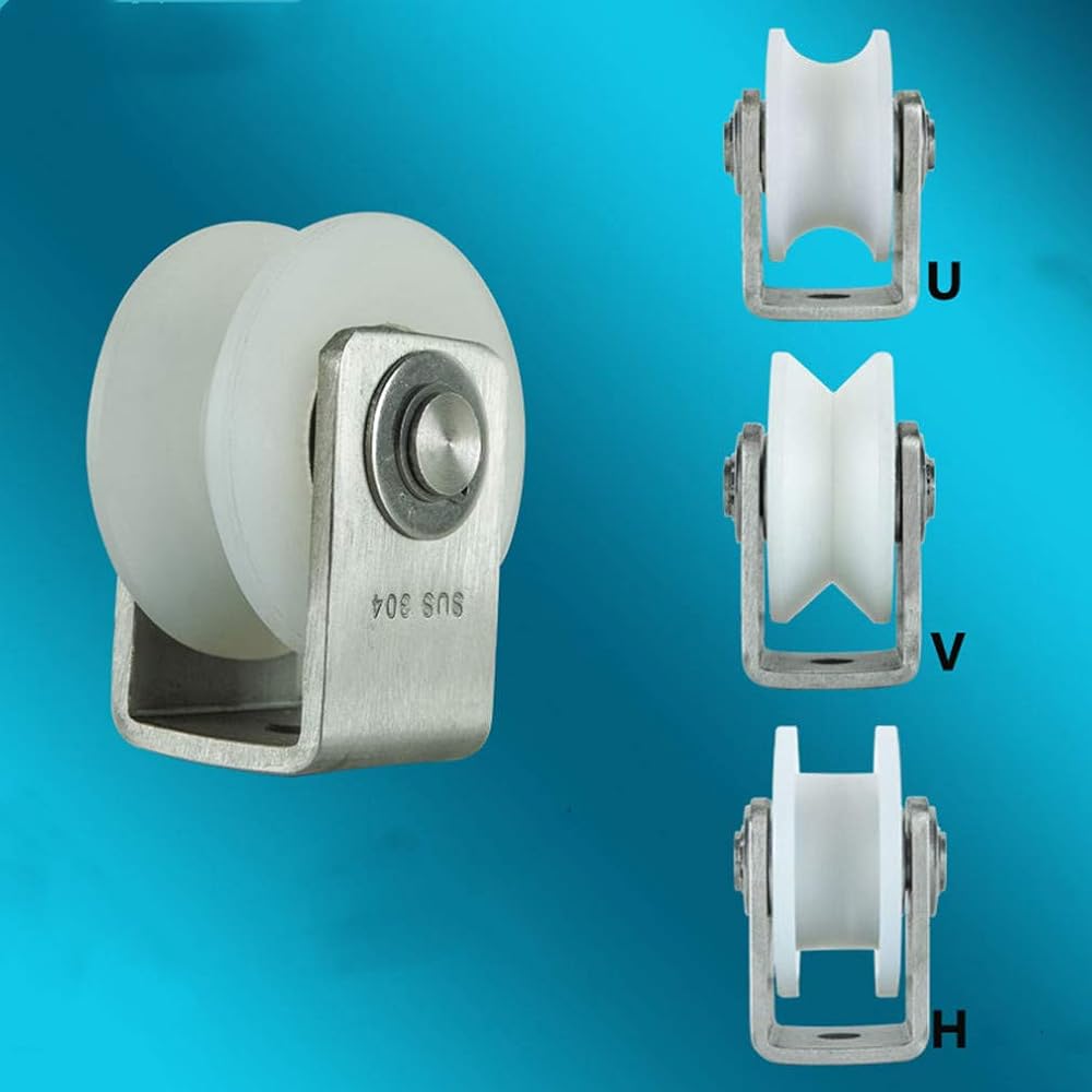 عجلات دوارة، بكرة مسار منزلقة من النايلون عالي التحمل، بكرة اتجاهية، محمل من الفولاذ المقاوم للصدأ 304، للآلات الصناعية، والأبواب، والدحرجة، وقضبان الحبال السلكية (نوع H، 48 مم/