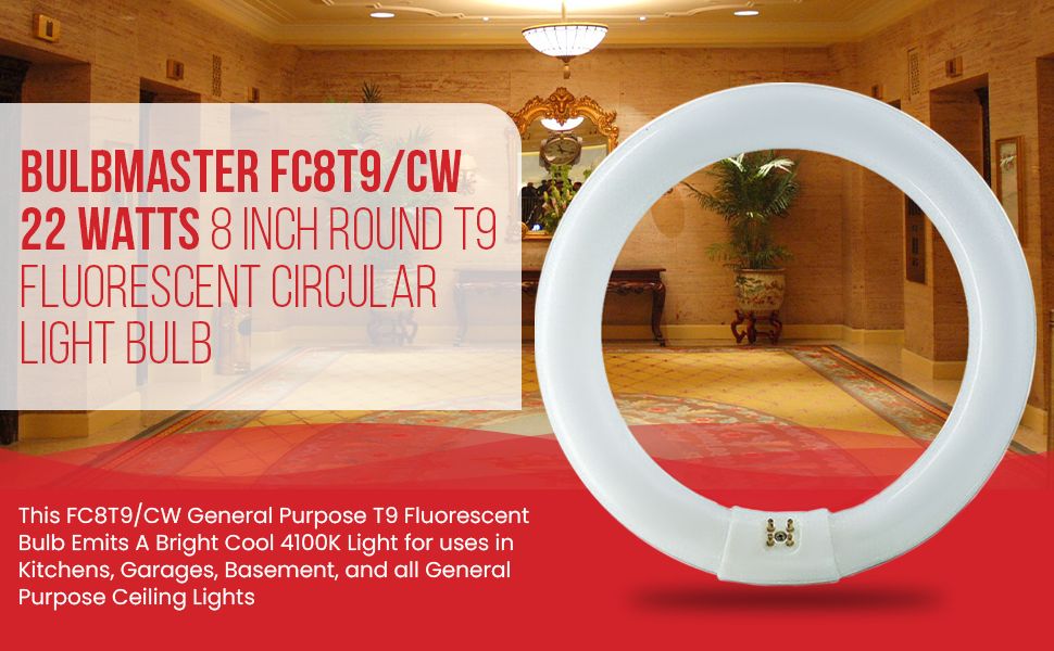 BULBMASTER: تنبعث لمبة الفلورسنت T9 للأغراض العامة FC8T9/CW من ضوء ساطع بارد 4100K للاستخدامات في المطابخ والجراجات والطابق السفلي وجميع مصابيح السقف للأغراض العامة،