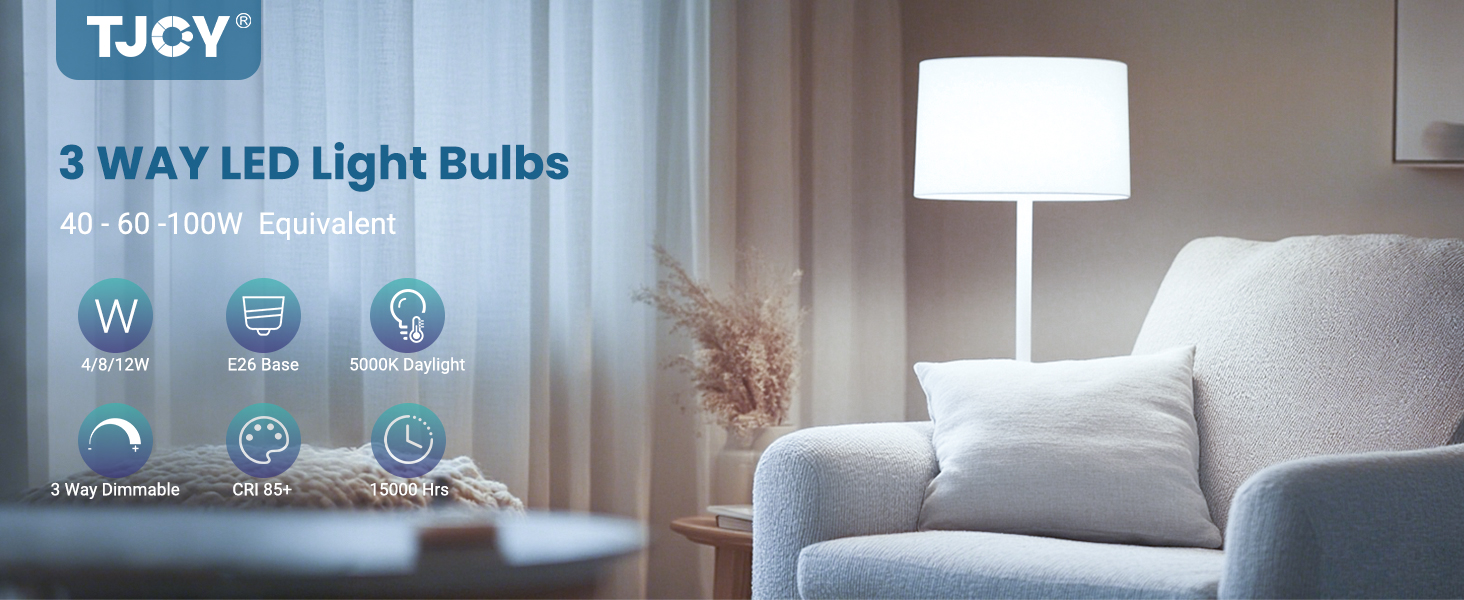 كفاءة في استخدام الطاقة وطويلة الأمد: استبدل المصابيح المتوهجة 40/60/100 واط بمصابيح LED ثلاثية الاتجاهات بقدرة 4/8/12 واط. توفر هذه المصابيح ما يصل إلى 15000 ساعة من الضوء الساطع والموثوق مع توليد الحد الأدنى من الحرارة، مما يوفر أكثر من 85% من الطاقة