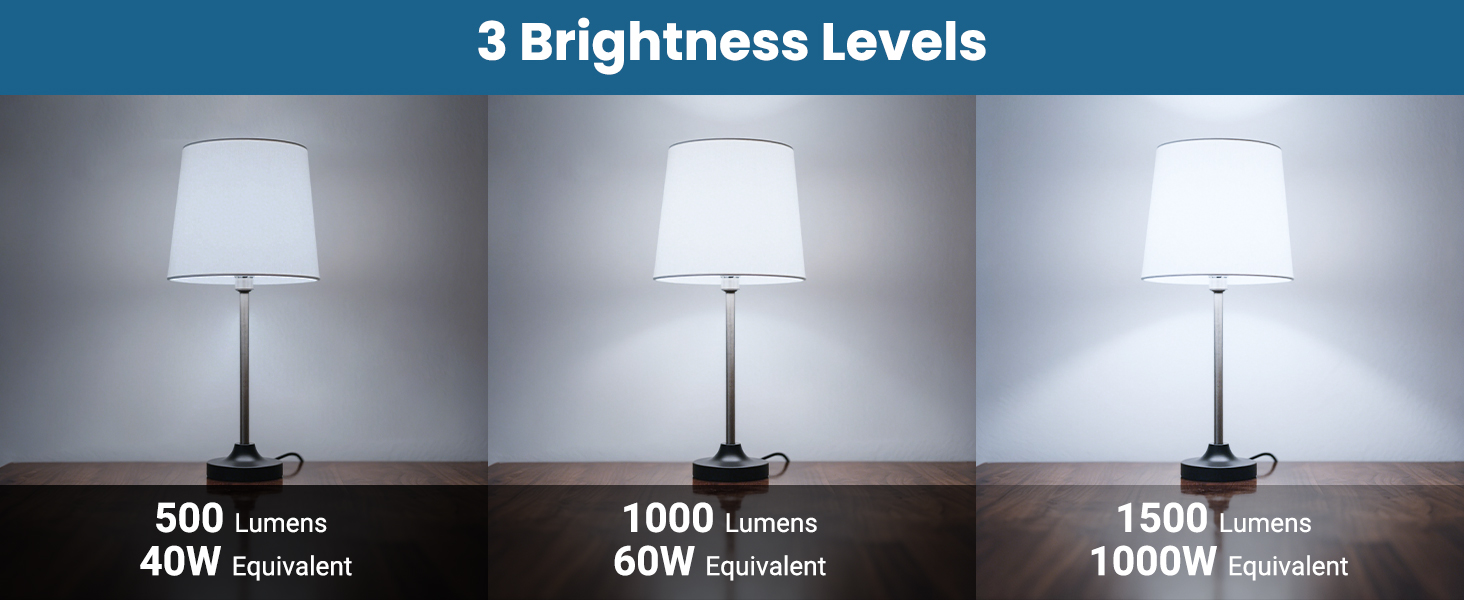 ملاحظة هامة: يمكن استخدام مصابيح الإضاءة ثلاثية الاتجاه فقط مع تركيبات الإضاءة ذات مقبس المصباح ثلاثي الاتجاه. لا تستخدمه مع المصابيح التي تعمل باللمس أو أدوات خفض الإضاءة أو المفاتيح التقليدية، مما قد يسبب ضوضاء أو وميضًا. عند استخدامه مع المفاتيح التقليدية، سيوفر المصباح سطوعًا متوسطًا يبلغ 1500 لومن فقط