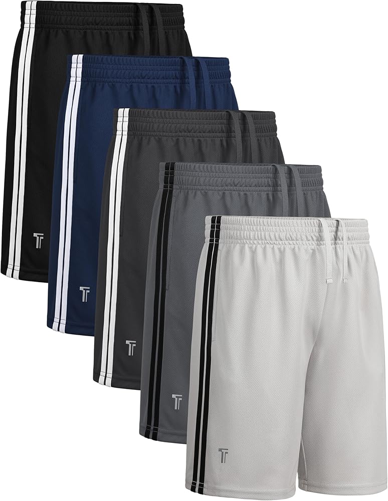 مجموعة من 5 شورتات رياضية للأولاد، شورت كرة سلة شبكي مع جيوب، ملابس للجري للأطفال في سن المراهقة سريعة الجفاف ومسامية in Kuwait