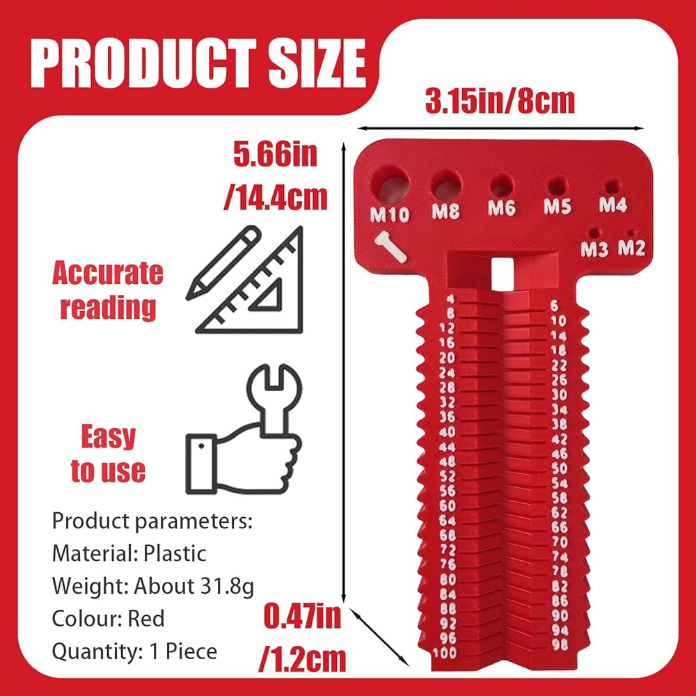 【بناء بلاستيكي متين】 تتميز أداة قياس المسمار هذه ببلاستيك قوي وخفيف الوزن. متين للاستخدام اليومي، وسهل التعامل معه ولن يخدش البراغي أو أسطح العمل.