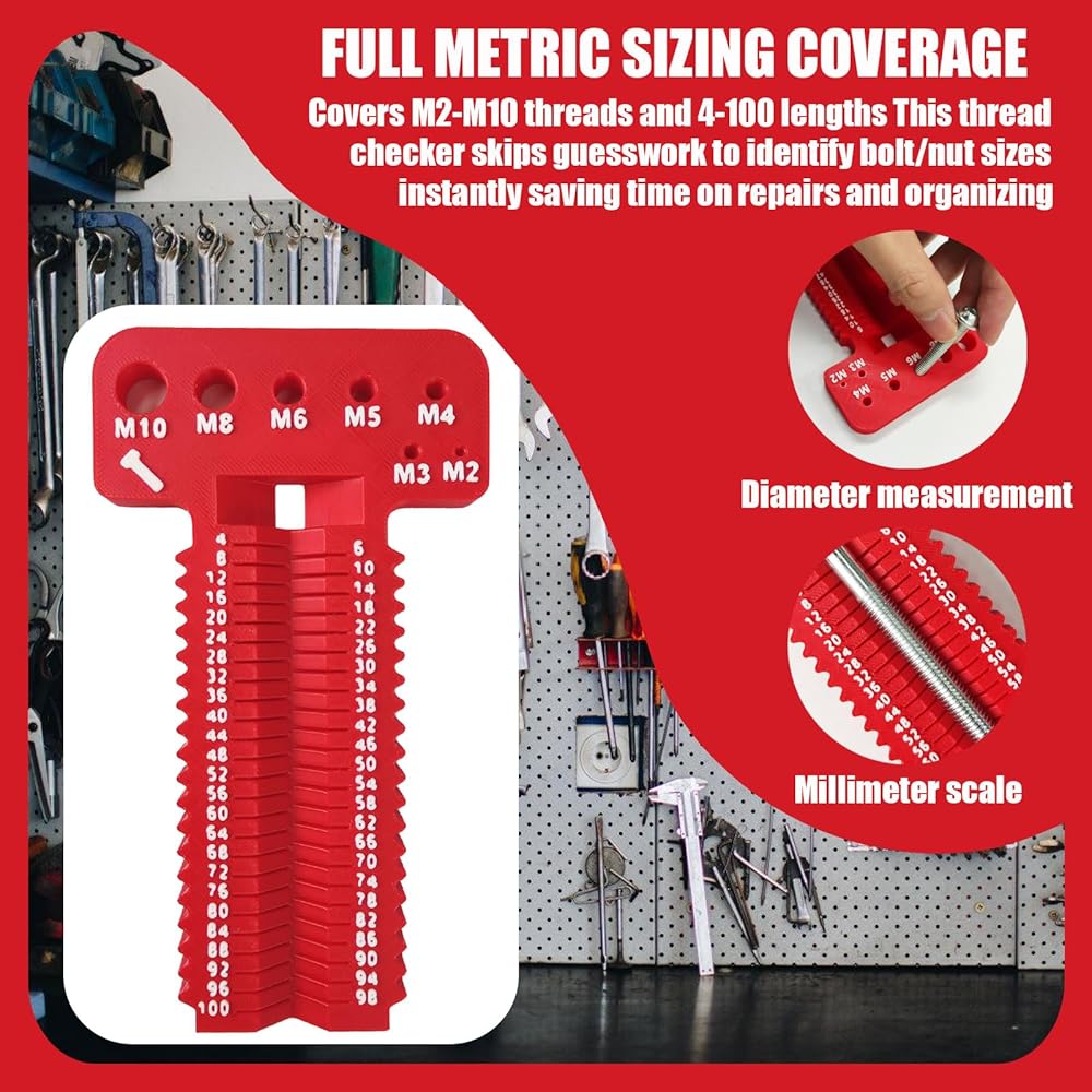 【تغطية كاملة للحجم المتري 】 يغطي خيوط M2-M10 وأطوال 4-100، يتخطى مدقق الخيوط هذا التخمين لتحديد أحجام البراغي/الجوز على الفور مما يوفر الوقت في الإصلاحات والتنظيم.