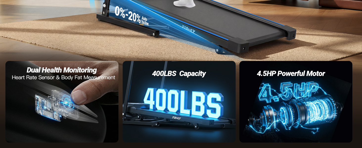 ★【ترقية محرك قوي وهادئ بقوة 4.5 حصان】تستخدم أجهزة المشي لدينا محركات ترقية عالية الأداء. بالمقارنة مع المحركات المصقولة التقليدية، فإن أجهزة المشي ذات المحرك المطور أكثر هدوءًا، وأكثر قوة، ولها عمر خدمة أطول. عند استخدام جهاز المشي ذو المحرك المطور، يمكن أن تصل السرعة القصوى إلى 8.5 ميل في الساعة، وهو أكثر من كافٍ لتمارين القلب الصعبة. مع سعة وزن تزيد عن 400 رطل، يعد جهاز المشي القابل للطي هذا مثاليًا للمستخدمين من جميع الأحجام.