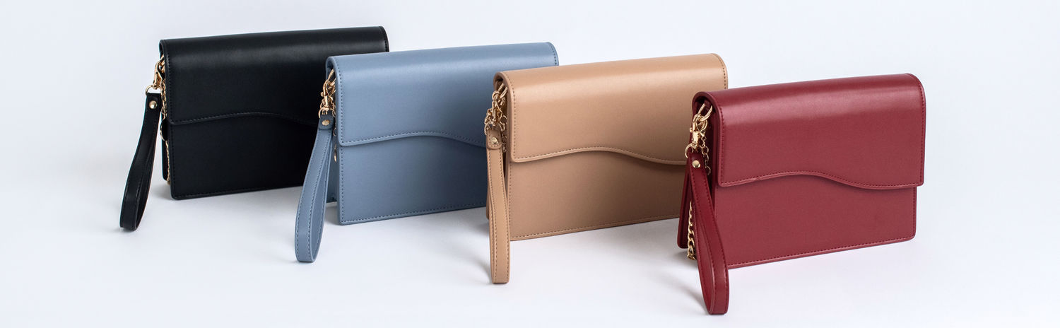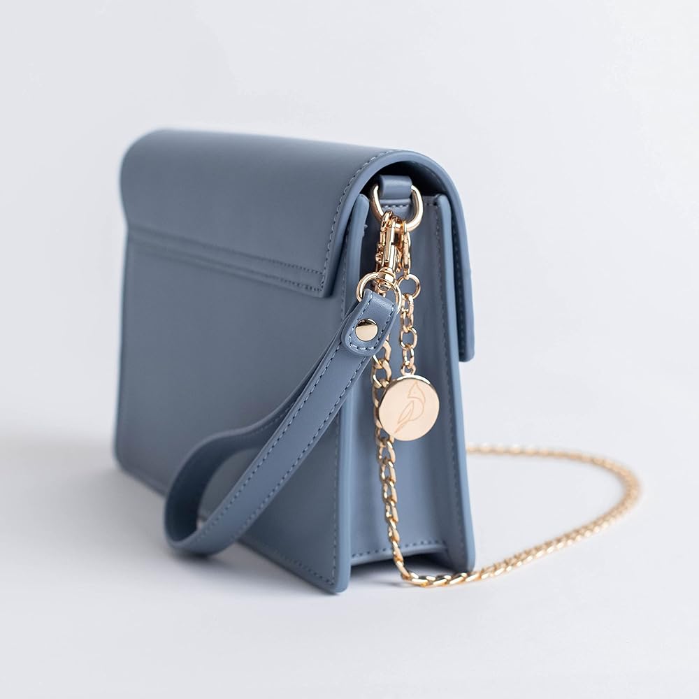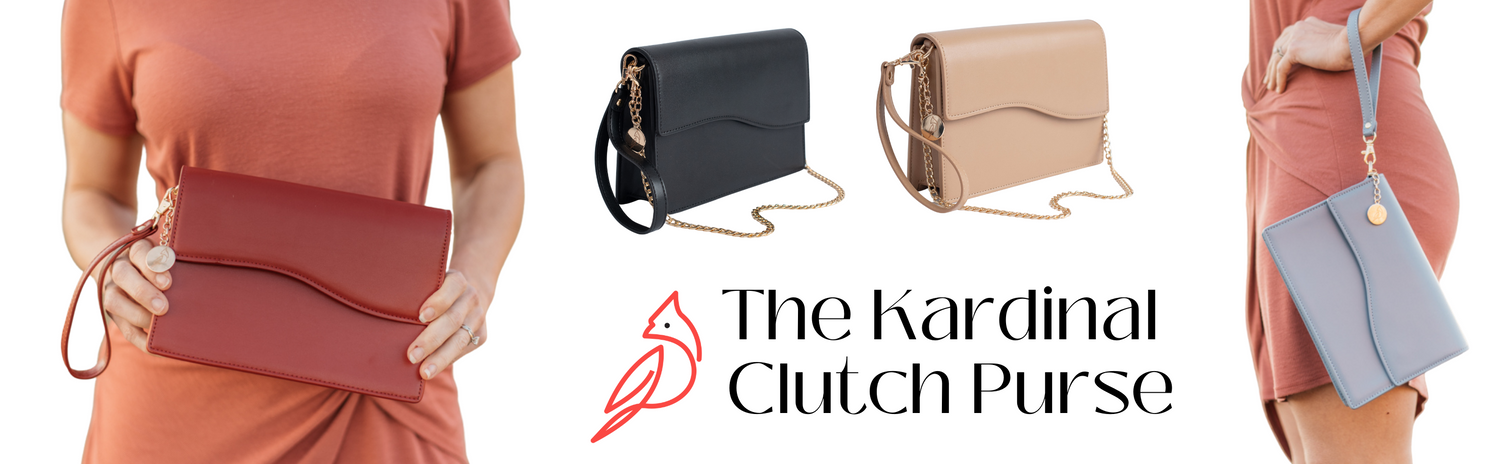 حقيبة يد مصممة مع إكسسوارات - تشتمل على حزام معصم من الجلد النباتي المتوافق، وسلسلة ولمسات ذهبية اللون، وإغلاق مغناطيسي، وحقيبة للعملات المعدنية بسحاب، وحامل بطاقات وميدالية شعار Kardinal Fashions.