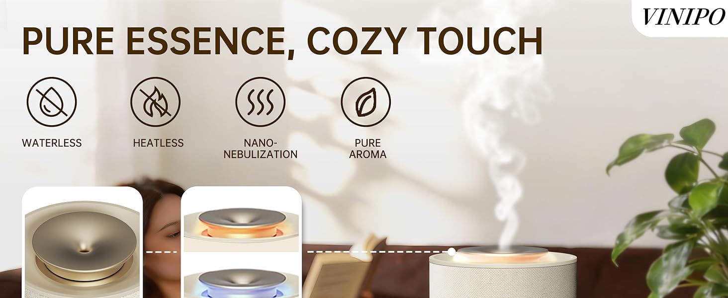 تقنية نشر الهواء البارد بدون ماء: تعتمد تقنية البخاخات المتقدمة لتفتيت الزيوت العطرية إلى رذاذ ناعم خالٍ من الماء بدون حرارة. وهذا يحافظ على الفوائد الطبيعية والرائحة الأصلية للزيوت، مما يضمن تجربة عطر غنية وقوية وغير مخففة. سهل الاستخدام ولا يحتاج إلى تنظيف خزانات المياه.
