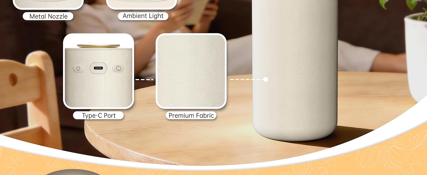 جمالية حصرية مغلفة بالقماش: ابتعد عن الإلكترونيات البلاستيكية الباردة. تم تغليف هذا الناشر بقماش ناعم فاخر يمنحك شعورًا بالدفء والراحة عند اللمس. يضيف نسيج النسيج الفريد طبقة من الراحة والأناقة، مما يجعله أكثر من مجرد جهاز - إنه قطعة من الديكور العصري الهادئ الذي يرفع من غرفة نومك أو مكتبك أو داخل سيارتك.
