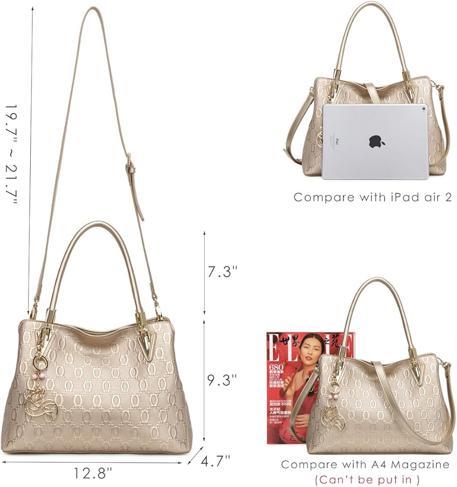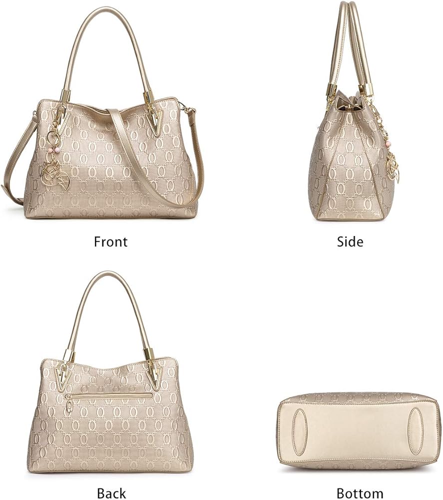 الميزات - نمط النقش الفريد من نوعه جنبًا إلى جنب مع زخرفة حلقة المفاتيح الرائعة تجعل حقيبة اليد والمحفظة الخاصة بنا أنيقة وأنيقة. مساحة كبيرة يمكنها حمل متعلقاتك الشخصية ويمكنك تنظيمها بسهولة باستخدام الأقسام الموجودة بالداخل.