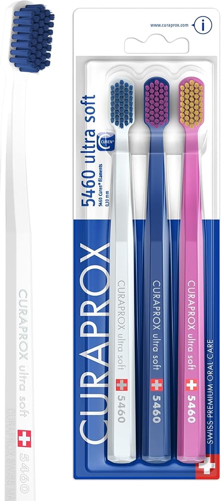Experience a gentle yet thorough clean with the Curaprox CS 3960 Super Soft Toothbrush. Designed for adults familiar with medium-firm brushes, it features 3,960 ultra-fine Curen filaments just 0.12 mm thick. These create a dense yet soft cleaning surface that removes plaque effectively while being kind to your gums. With a slightly angled, compact head and ergonomic octagonal handle, it supports optimal brushing technique every day. Instructions: Use twice daily for two minutes at a 45° angle with circular movements. Replace every 3 months or sooner if filaments show signs of wear. At Curaprox, we believe oral care should be effective, safe and joyful. That's why our products are developed in Switzerland with a focus on prevention, softness and smart design.