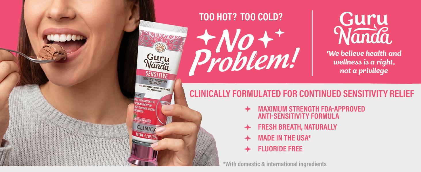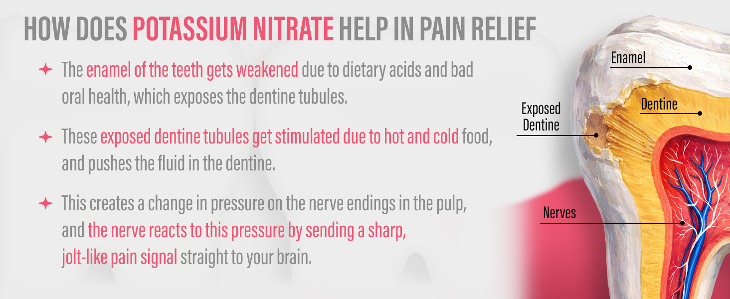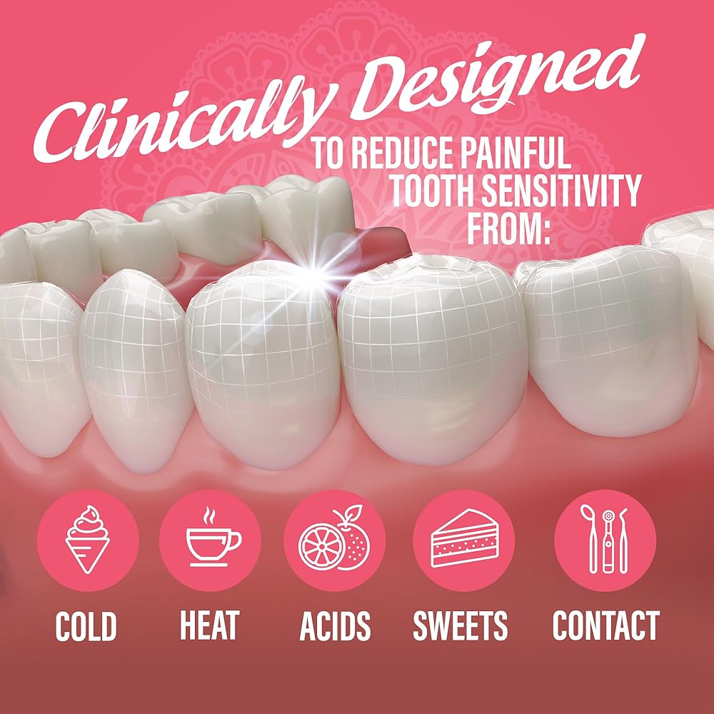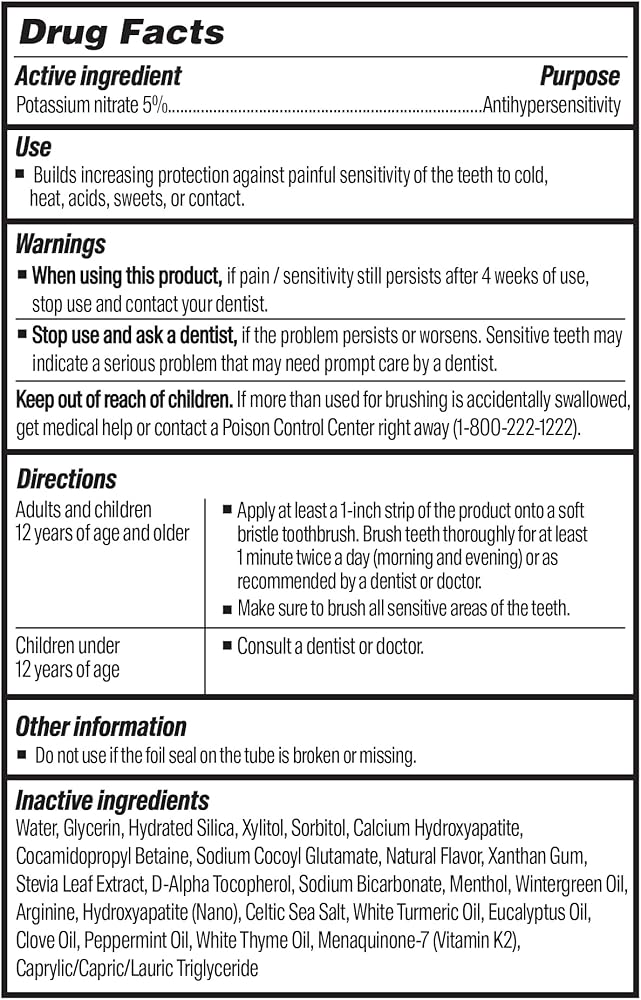 تم إثبات فعاليته سريريًا في تخفيف الحساسية: تم تركيبه باستخدام 5% من نترات البوتاسيوم، وهو مكون مضاد لفرط الحساسية معترف به من قبل إدارة الغذاء والدواء الأمريكية والذي يبني حماية متزايدة ضد حساسية الأسنان المؤلمة مع الاستخدام المستمر.