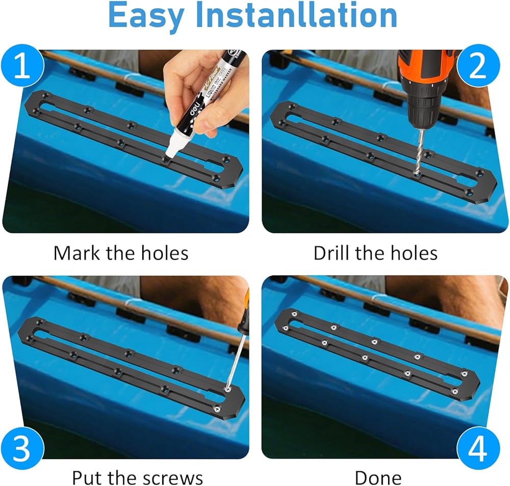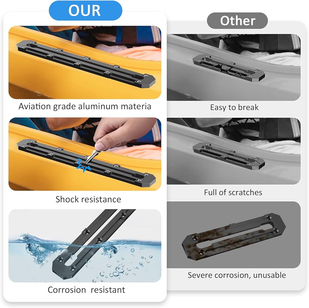 The product adopts a low profile streamlined design, which minimizes the protruding height on the kayak deck while ensuring load-bearing strength. This not only brings a simple and beautiful appearance, but also effectively reduces wind resistance and water flow resistance, avoiding hooking onto fishing lines, ropes or other items during rowing or storage, improving the convenience and safety of use. The track body is made of high-quality aluminum alloy, which combines the characteristics of lightweight and high strength. It is corrosion-resistant and resistant to seawater erosion, ensuring long-term use in harsh marine or freshwater environments.
