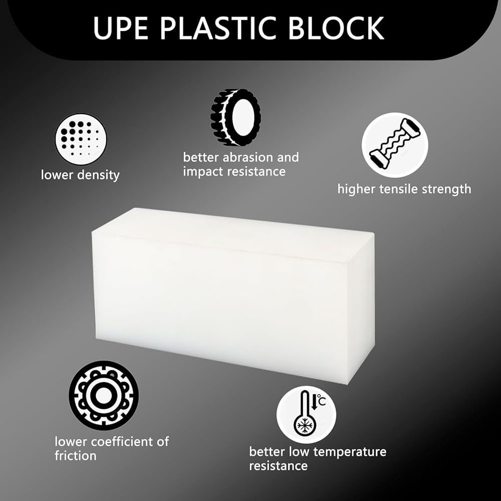 تنبيه: مادة UPE عبارة عن بلاستيك صناعي خام وبالتالي قد تحتوي على خدوش وسحجات بسيطة. يتم تصنيع هذه الكتلة البلاستيكية بنظام متري وقد تحتوي على بعض التفاوتات. لا تتردد في الاتصال بنا إذا كانت لديك أي أسئلة، فنحن دائمًا في خدمتك. يتم إنتاج المنتج وفقًا للنظام المتري وهناك تفاوتات معينة.