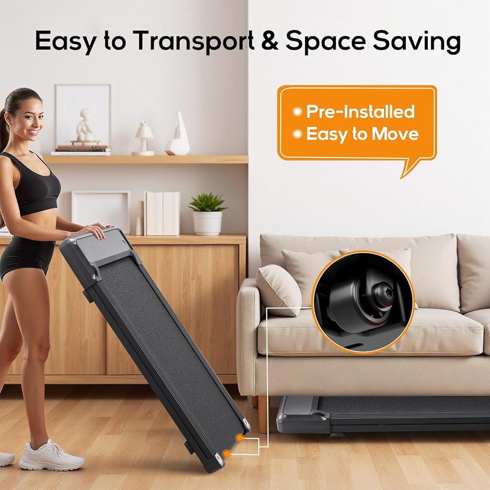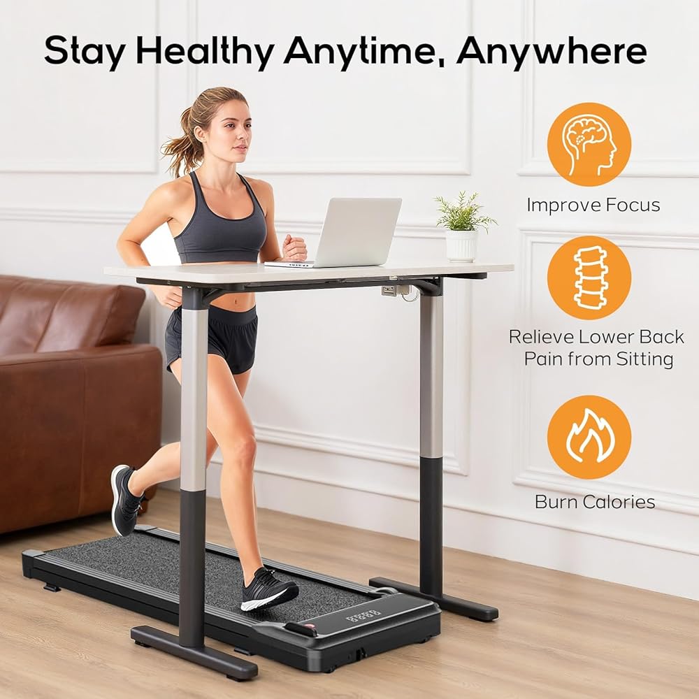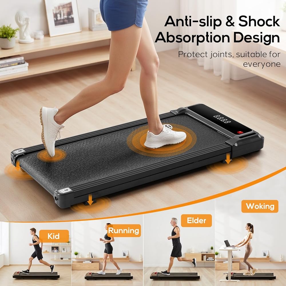• 2️⃣ تصميم صغير الحجم موفر للمساحة: يبلغ سمك جهاز المشي الموجود أسفل المكتب 3.58 بوصة فقط، ويمكن تركيبه بسهولة تحت الأسرة أو الأرائك أو المكاتب. مثالية للشقق أو المكاتب الصغيرة، فهي تساعدك على البقاء نشيطًا مع توفير مساحة قيمة.