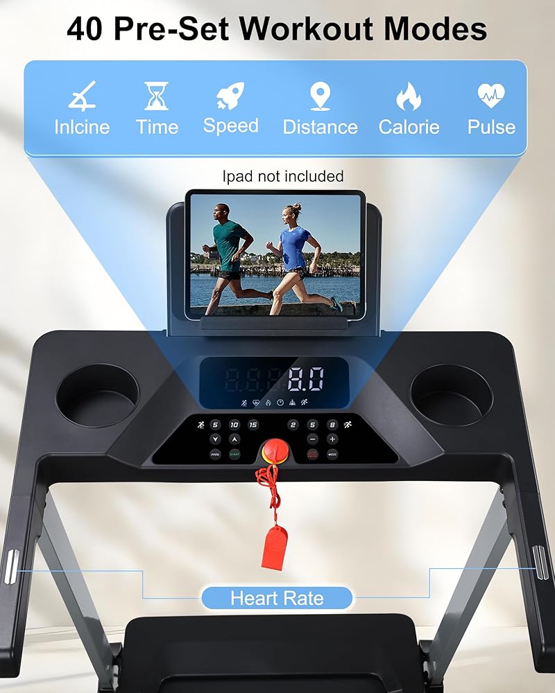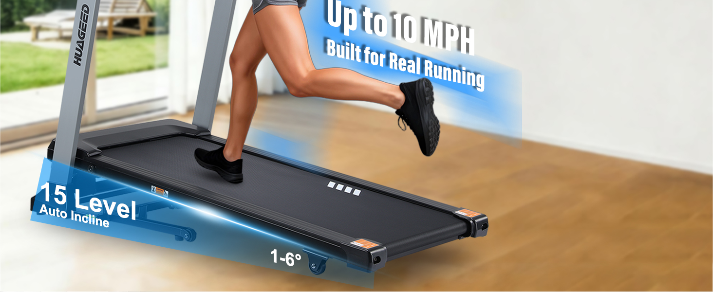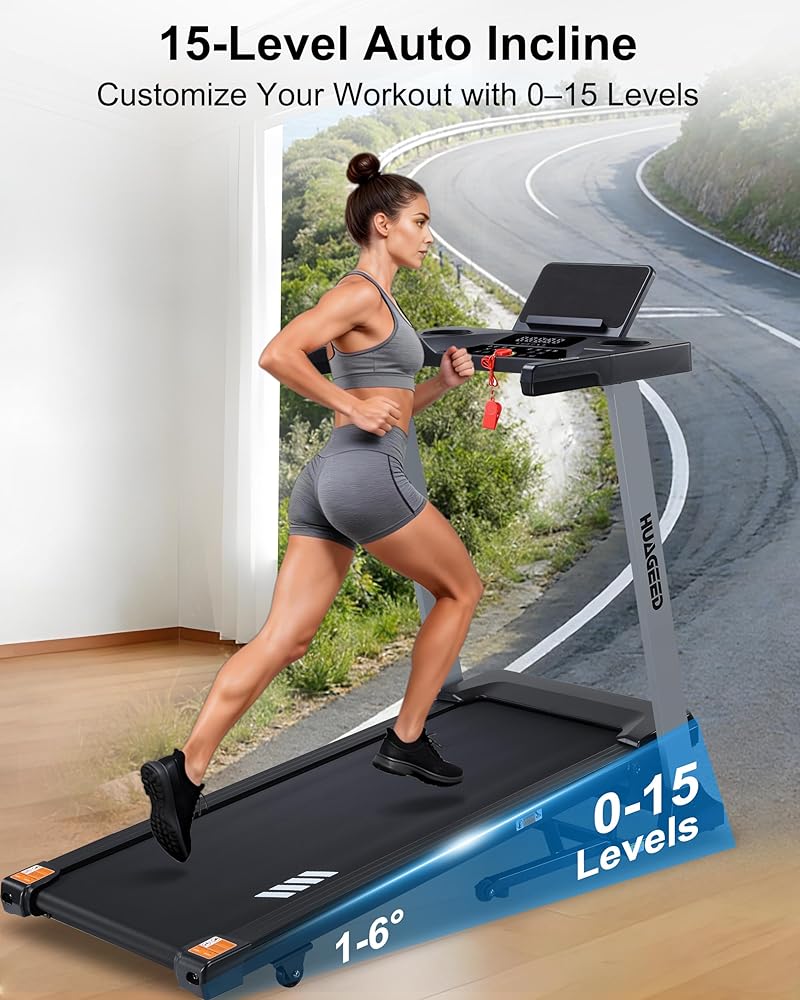 أجهزة الجري HUAGEED للمنزل، 15 مستوى من الانحدار التلقائي، حزام عريض 17.32 بوصة، 3.0 حصان، 0.6-10 ميل في الساعة، آلة جري قابلة للطي بسعة 300 رطل، 40 برنامجًا محددًا مسبقًا