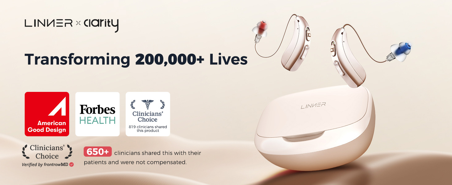 مساعدات السمع LINNER-Clarity لكبار السن، مضخم سمع قابل لإعادة الشحن مع خاصية إلغاء الضوضاء، مساعدات سمعية بدون وصفة طبية مصممة للبالغين الذين يعانون من فقدان السمع الخفيف إلى المتوسط in Kuwait