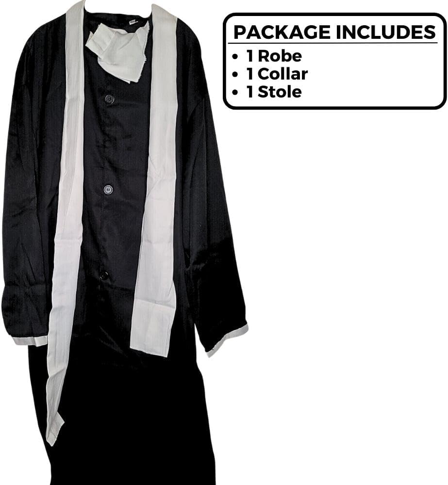 تصميم أصلي: تمتع بمظهر آسر مع مجموعة أزياء الأب الكاهن الكلاسيكية التي تتميز برداء أسود فاخر، وياقة بيضاء، ووشاح أبيض؛ مثالية للمناسبات الدينية والمسرحية، مما يجعلك مميزًا بين أي حشد من الناس.