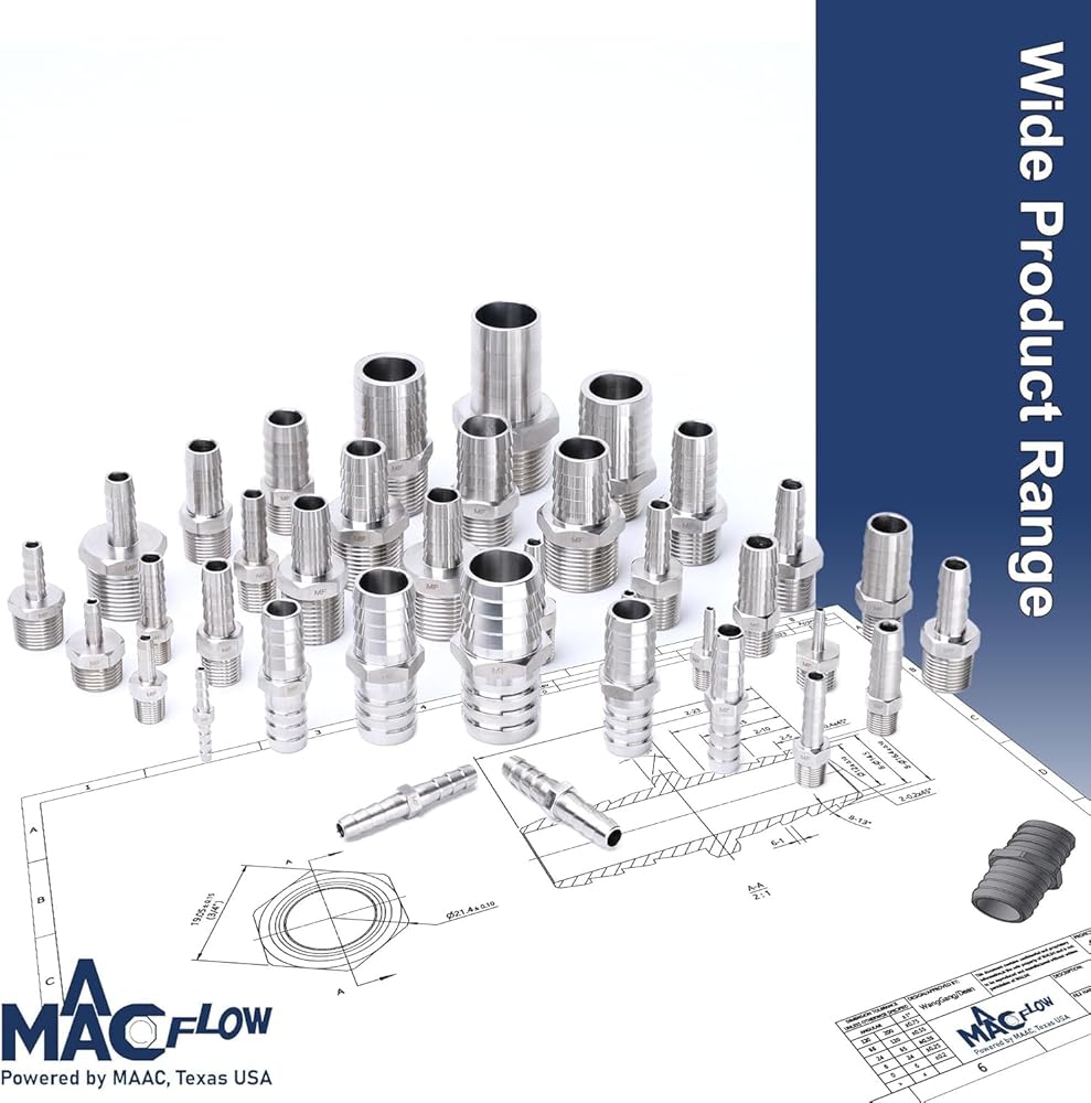 MAACFLOW الفولاذ المقاوم للصدأ 1/4 بوصة إلى 3/16 بوصة خرطوم مخفض معرف الشائكة (حزمة من 2)