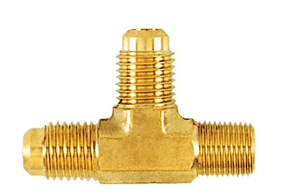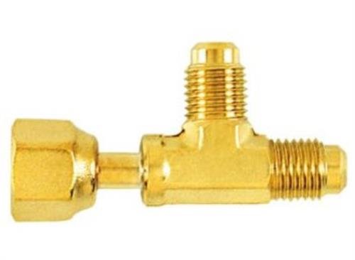 - 1/4" f. flare w/ depressor tip x 1/4" m. flare access x 1/4" m. flare access on branch, one valve core, forged brass