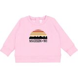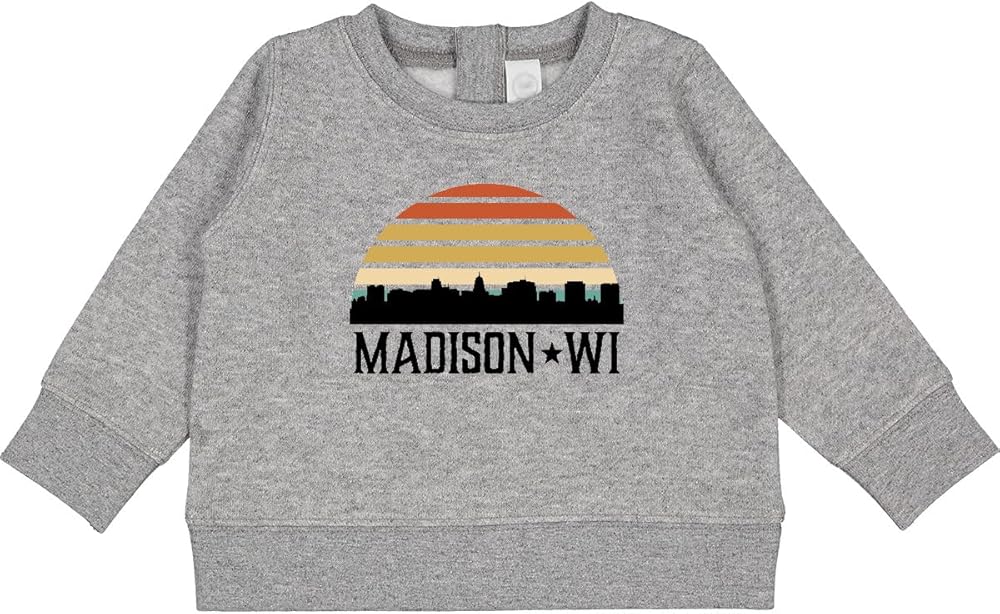 - Madison Wisconsin Baby Sweatshirt vacation souvenir travel gift with city skyline on retro sunset