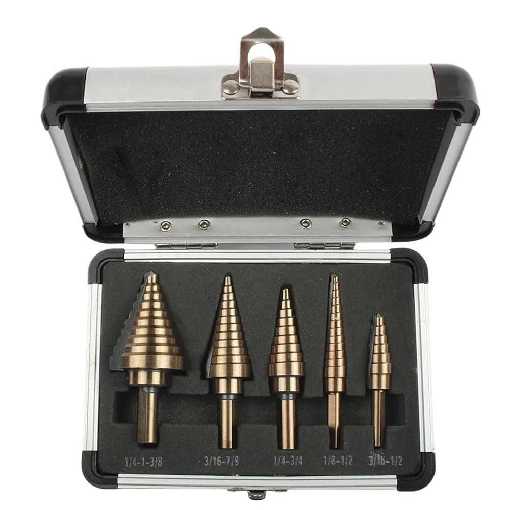 Drill Bit 5: (3/8" - 10 Steps): 1/4, 3/8, 1/2, 5/8, 3/4, 7/8, 1, 1-1/8, 1-1/4, 1-3/8