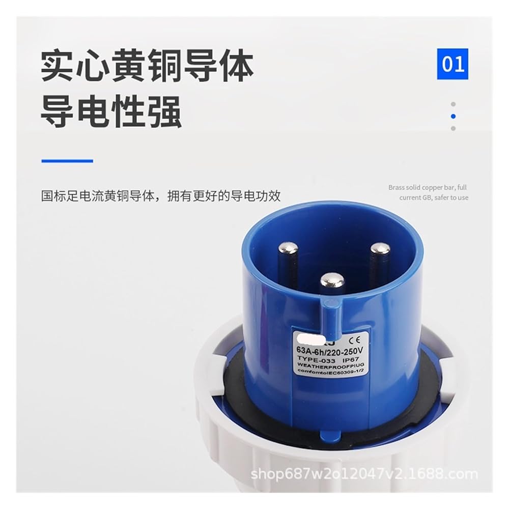 PlugsModel: 3-core 63A/industrial plug/033 (solid)Plug name: 3 core 63AType: First generation industrial socketRated voltage: 220V-250VRated current: 63ANumber of pluggable times: 5000Processing customization: supportScope of application: Applicable to multiple ranges3C rated voltage range: above 50V and below 440V