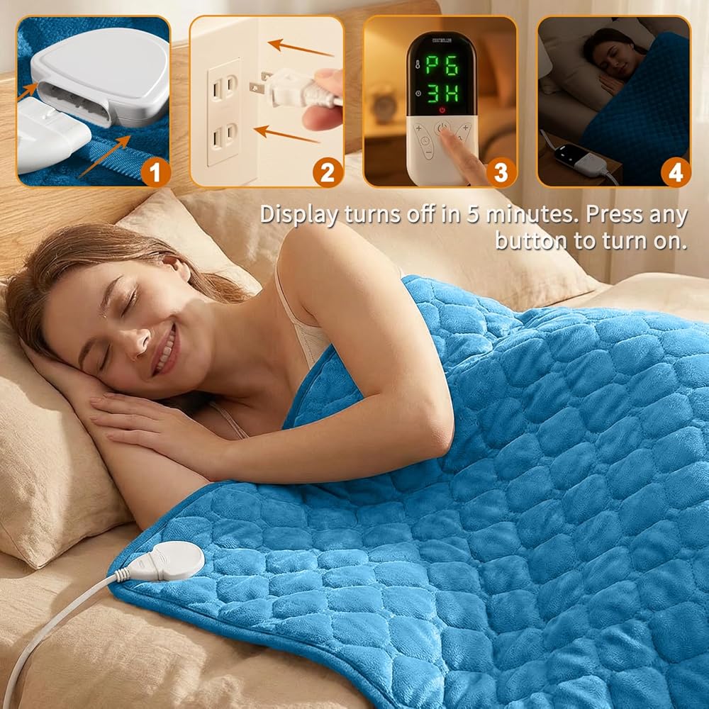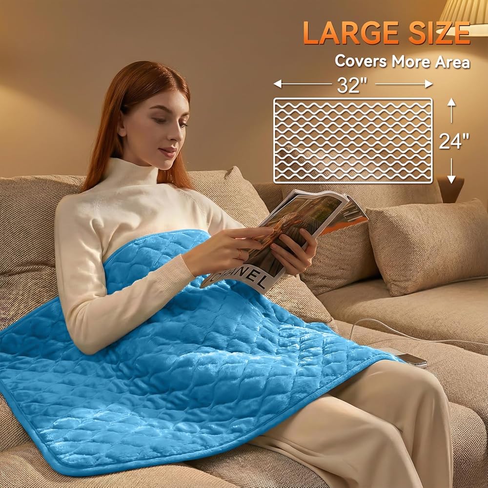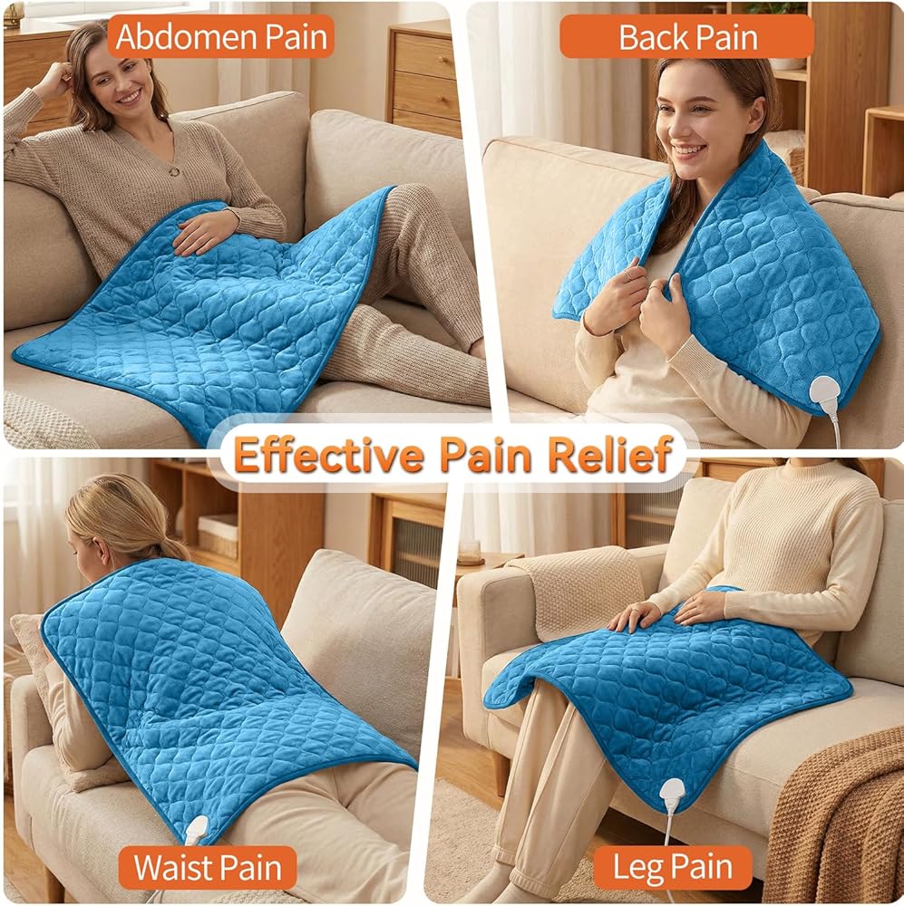 【EXTRA LARGE COVERAGE AREA】The extra large 32"x24" body heating pad easily covers a larger area for ultimate comfort. The back pain relief heating pad is perfect for wrapping your legs, spreading over your back, and covering your shoulders, and its soft material brings you soothing warmth.Heating pad includes a extra-long power cord, so you can easily use it wherever there is an outlet.