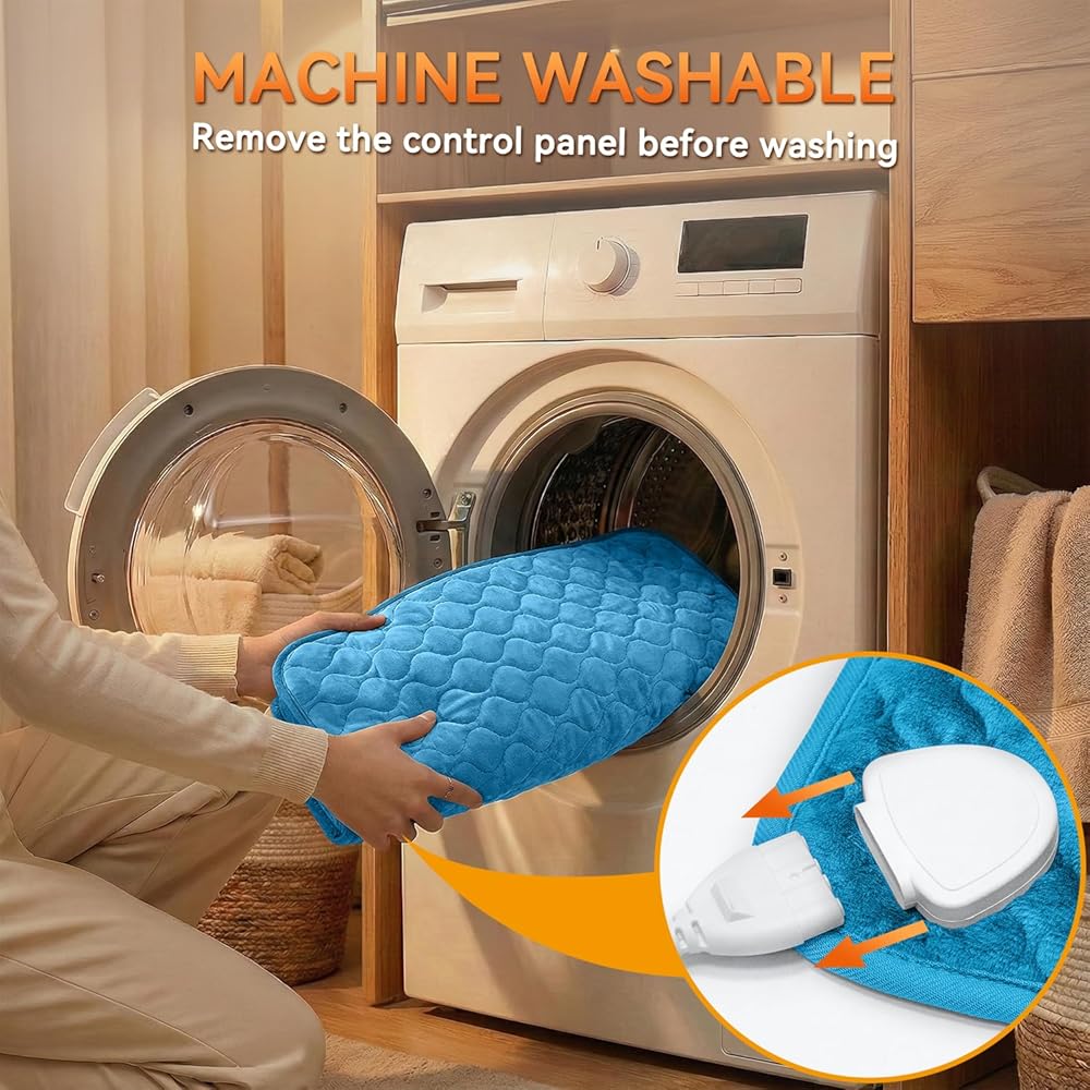 【FAST ACTING, PHYSICAL HEAT THERAPY】Back heating pads use advanced heating technology to provide effective, targeted physical pain relief. Our heating pad for period cramps effectively target deep muscle groups for relief and comfort. This extra large heating pad is both thoughtful and practical, and easy to clean and machine washable,please remove the cable/controller before cleaning the extra large heating pads.