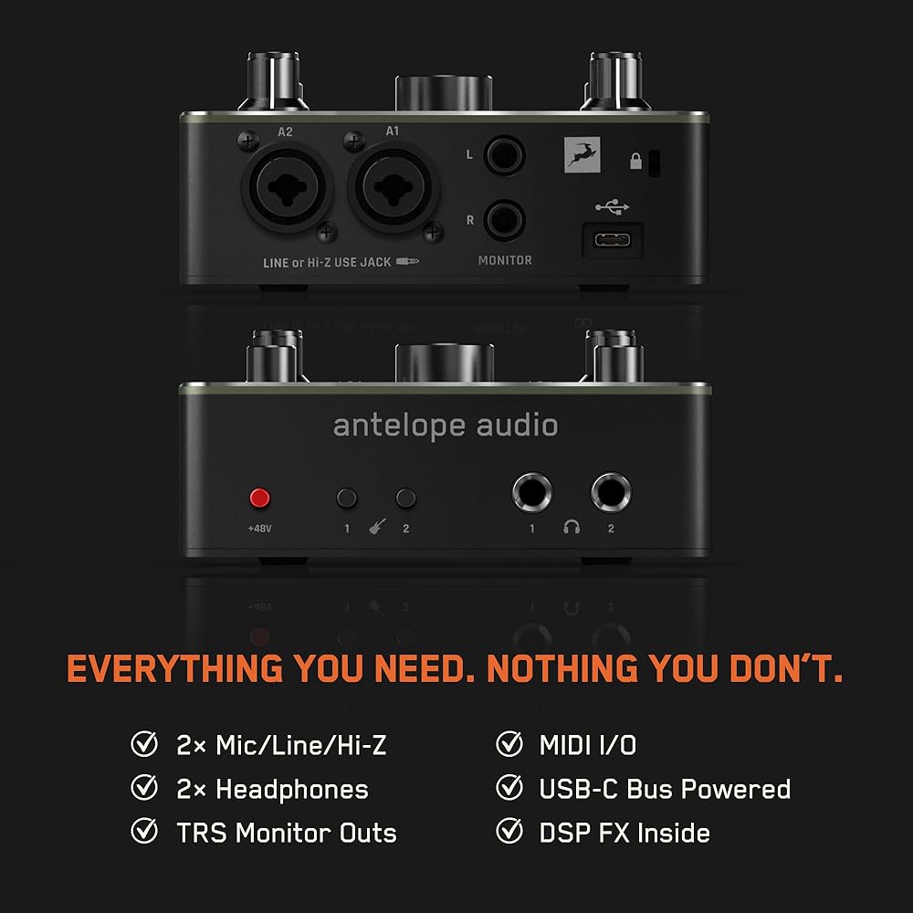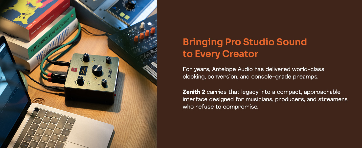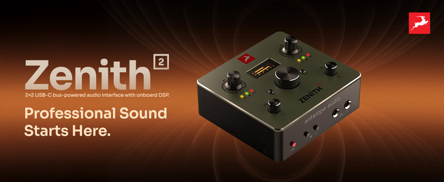 واجهة صوت Antelope Audio Zenith 2 USB-C للجيتار والغناء والبث والبث الصوتي، تتميز بمكبرات صوت من درجة الاستوديو وإعدادات مسبقة وتأثيرات | تسجيل سهل للمبتدئين