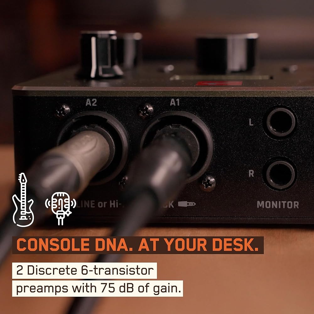 مضخمات ميكروفون من فئة وحدة التحكم مع مكاسب هائلة: يوفر مضخما ميكروفون منفصلان بالكامل بستة ترانزستورات ما يصل إلى 75 ديسيبل من الكسب النظيف، ويلتقطان الأغاني والقيثارات والأدوات بوضوح أصلي. مستوحاة من معدات الاستوديو الرائدة من Antelope Audio، تعمل واجهة الصوت XLR هذه على تشغيل الميكروفونات الديناميكية المتعطشة للمكاسب بدون معززات خارجية.