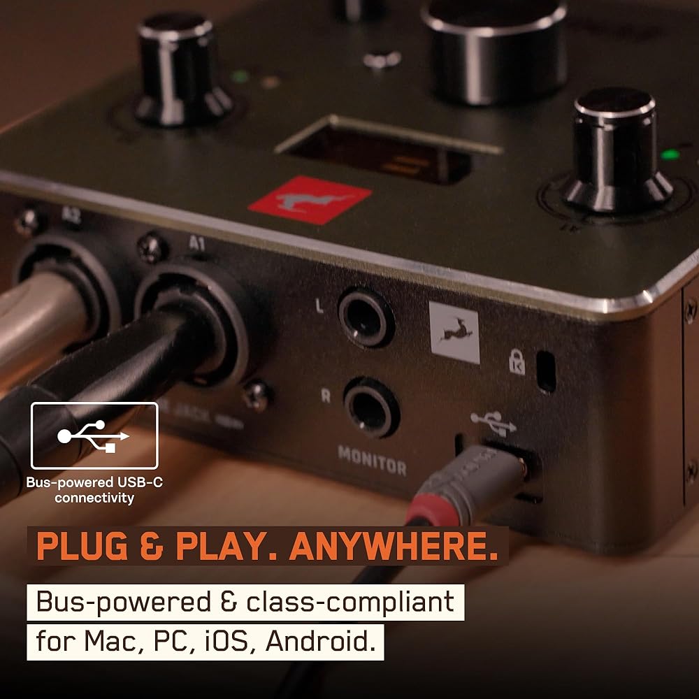 إعداد USB-C حقيقي ومتوافق مع الفئة: تعمل واجهة الصوت USB-C هذه بدون برامج تشغيل على أجهزة Mac، والكمبيوتر الشخصي، وiOS، وAndroid. إن قابلية النقل التي تعمل بالحافلة تجعلها مثالية كواجهة صوتية لنظام التشغيل Mac، أو واجهة صوتية للكمبيوتر الشخصي، أو جهاز محمول. قم بالتوصيل وابدأ التسجيل على الفور - لا يوجد مصدر طاقة، ولا يوجد احتكاك في الإعداد.