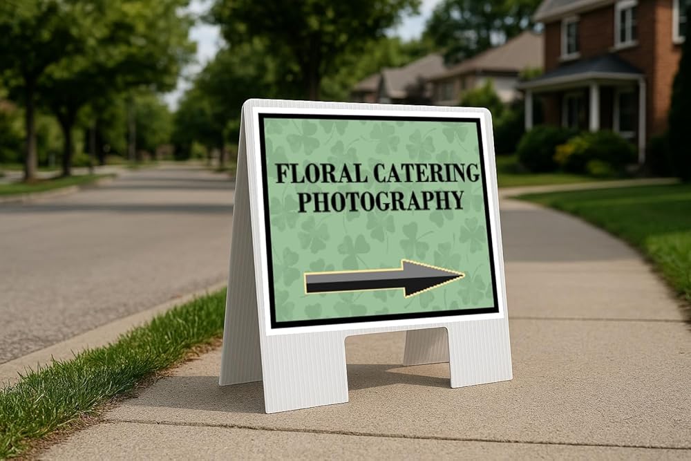 • Freestanding A-Frame Design – Sets up quickly without stakes or extra hardware; stable on sidewalks, driveways, or entryways.