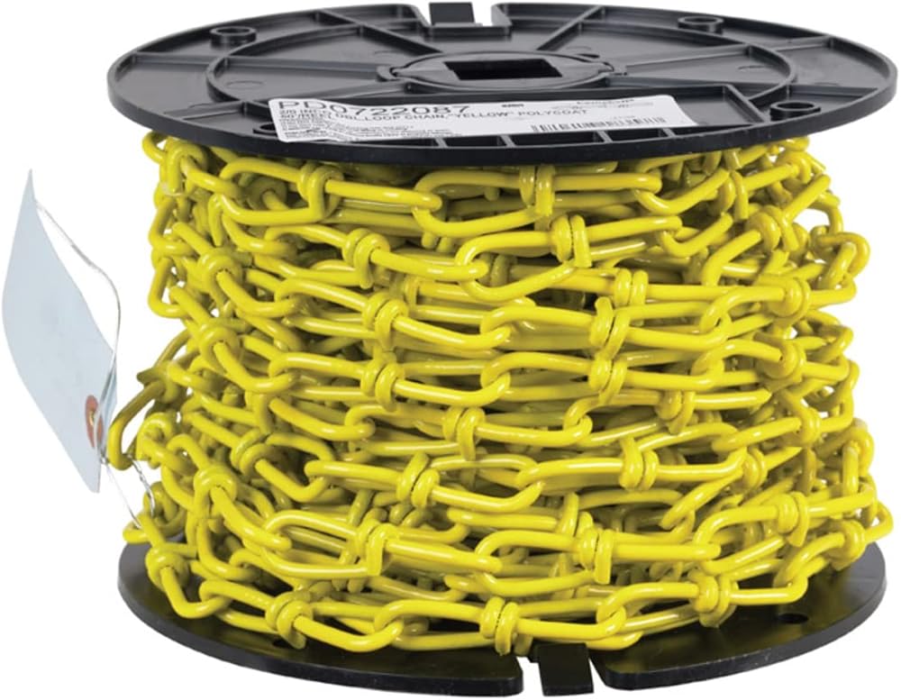 The Campbell 2/0 Yellow Double Loop Chain is a versatile and durable metal chain designed for a wide range of indoor and outdoor applications. Measuring 50 ft. in length, this heavy duty chain is constructed from high-quality steel for strength and reliability, making it ideal for use as a safety chain, fence chain, or swing chain. The bright yellow finish enhances visibility, which is perfect for marking boundaries or creating safety barriers in industrial, commercial, or residential settings. Its double loop design provides flexibility and ease of use, allowing for secure attachment and adjustment as needed. With a package weight of 22.6 lb. and compact dimensions of 12 in. x 9.5 in. x 9.5 in., this chain is easy to store and transport. Whether you need a strong outdoor chain for swingsets, a reliable metal chain link for securing items, or a small chain link for decorative or functional purposes, the Campbell Yellow Double Loop Chain delivers dependable performance. Suitable for both light duty and heavy duty tasks, this steel chain is a practical solution for a variety of projects requiring strength, safety, and visibility.
