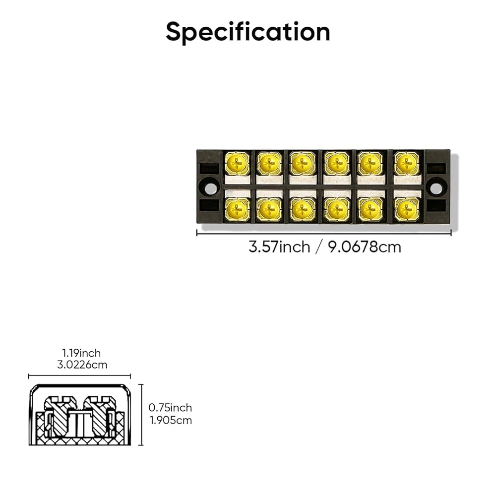 **Effortless Installation:** The terminal strips are designed for straightforward installation, featuring two screw holes at each end to securely hold them in place. Each end is equipped with a mounting hole for fixed installation. Additionally, the fork terminal strip can be easily cut at any position to accommodate your specific requirements.
