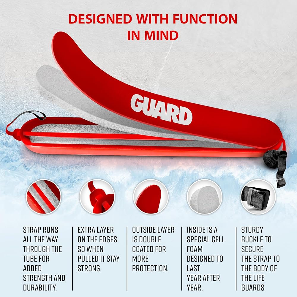 Introducing the EMS XTRM Lifeguard Rescue Tube with Matching Whistle, the ultimate tool for ensuring water safety in various aquatic environments. Crafted with precision and durability in mind, this lifeguard float offers essential features to aid lifeguards in their duties. Available in 40" & 50” Constructed from multiple layers of closed cell NBR foam and coated with high viscosity vinyl, this lifeguard flotation device guarantees buoyancy and resilience in challenging water conditions. Its heavy-duty construction ensures longevity, making it a reliable companion for lifeguards in their day-to-day tasks. Equipped with a 6-foot strap on one end and a handle grip on the other, this lifeguard tube provides versatility in rescue operations. The strap allows for secure attachment or tossing during rescue missions, while the handle grip ensures a firm hold, even in swift currents. Additionally, the tube features tapered ends to reduce drag, facilitating smoother movement through the water. Included with the lifeguard tube is a matching whistle and lanyard, adding an extra layer of safety and convenience for lifeguards. The red pealess whistle, along with the waterproof and comfortable lanyard, ensures clear communication and easy access during emergencies. Overall, the EMS XTRM Lifeguard Rescue Tube with Matching Whistle is a must-have tool for lifeguards, offering reliability, durability, and peace of mind in water safety operations. Whether on beaches, pools, or waterfronts, this lifeguard flotation device provides essential support to lifeguards, ensuring the safety of swimmers and beachgoers alike.