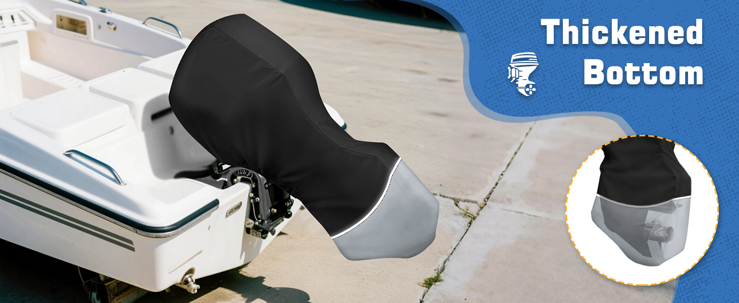 نسيج سميك مطور: يعتمد النسيج الرمادي الموجود في الجزء السفلي من الغطاء الخارجي على تصميم مطور وسميك، والذي لا يمكنه فقط حماية شفرات المروحة وتقليل الاحتكاك، ولكن أيضًا ليس من السهل تمزيقه، بالإضافة إلى ذلك، نضيف شرائط عاكسة على غطاء القارب لتسهيل رؤيته في الليل، خاصة للقطر الليلي، لضمان سلامتك أنت وقاربك.