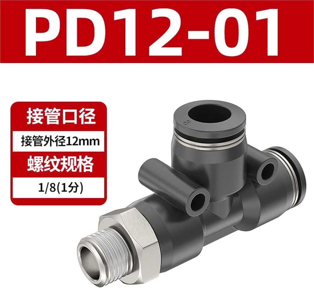 القصبة الهوائية موصل سريع على شكل حرف T الجانب المحملة PD4-01/6-01/8-02/12-04 الملحقات 1 قطعة (黑色PD12-01)