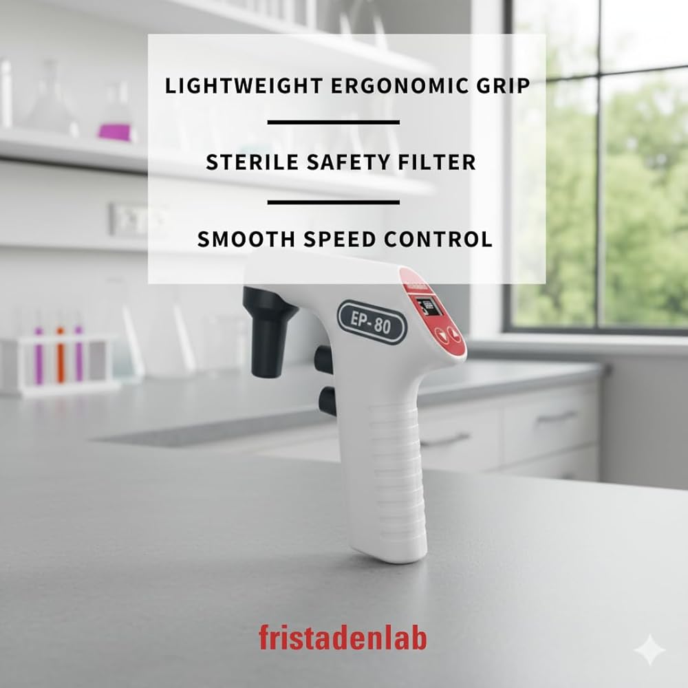 The Fristaden Lab Electric Pipette filler uses a powerful motor that lets you pick up and pour out liquids with just one hand. It is very easy to control, so you can move exactly the right amount of liquid every time without any mistakes.