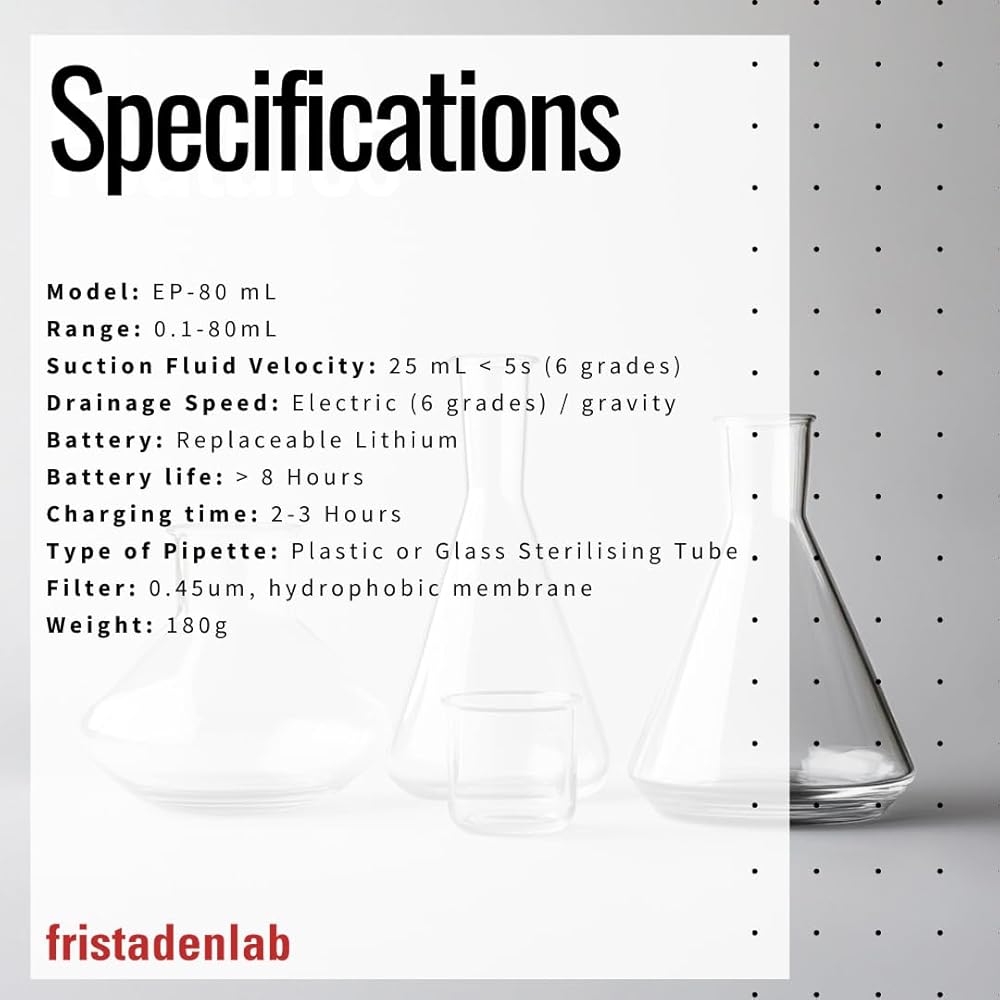 Fristaden Lab Electric Pipette Controller - Automatic Motorized Pipette Filler for 0.1-80ml Pipettes - Adjustable Speed, Ergonomic Design with Rechargeable Battery; U.S. Warranty