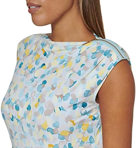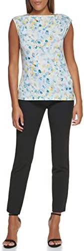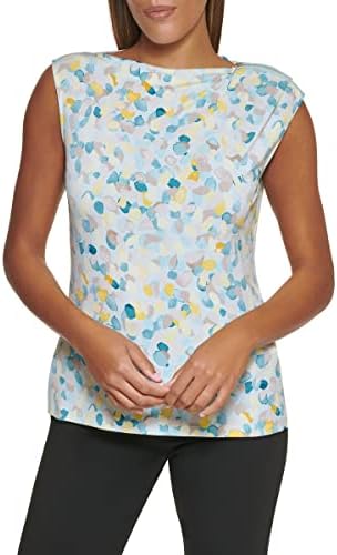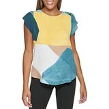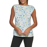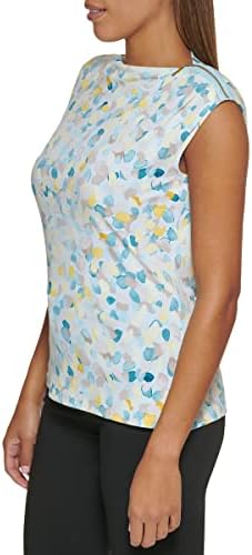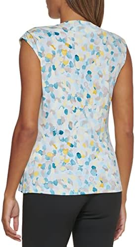 قميص DKNY نسائي قصير الأكمام منسوج بالسحب، Celadon، X-Small US