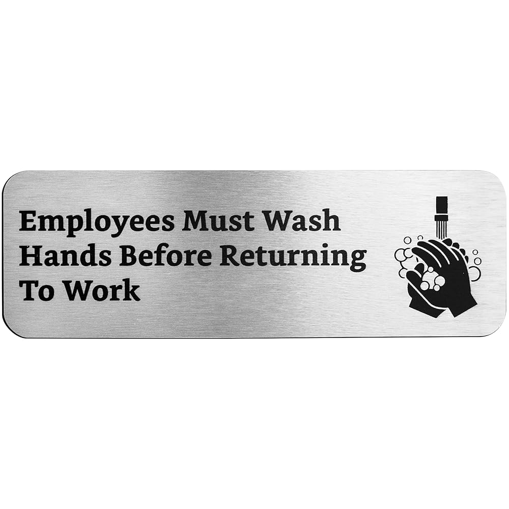أبعاد المنتج: يجب على كل موظف غسل اليدين قبل العودة إلى العمل، ويبلغ طول اللافتة 9 بوصات وعرضها 3 بوصات، مع شكل نحيف يتميز بسمك 0.37 بوصة فقط.