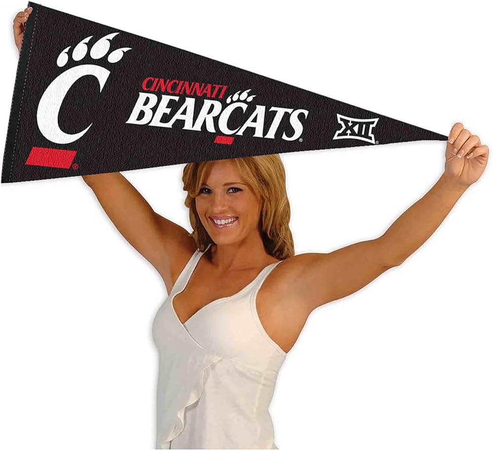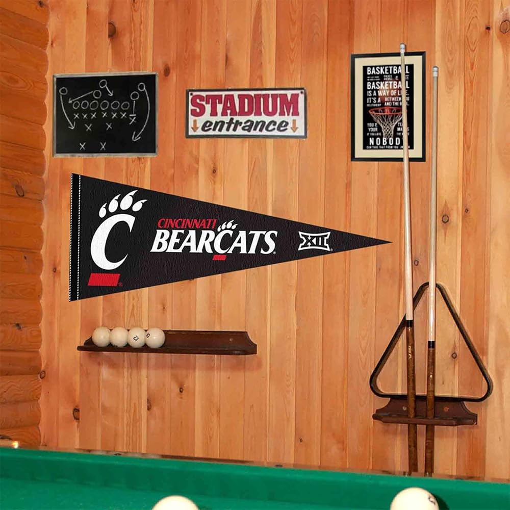 Our Pennant Flag is a great way to show your college allegiance in your sports room, game room, office, bedroom, or any room by displaying as a wall banner. These pennants measure 12 in X 30 in, are made of Felt, and are single-sided Screen Printed with Bearcats insignias and logos. Each Flag, Banner or Pennant is Officially Licensed and Team, College, or University Approved approved which insures current insignias, wordmarks, and authentic colors. These pennants also include a sewn pennant stick sleeve on the left side which can be used to insert a pennant stick, if desired.